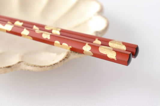 KORINDO Echizen Chopsticks Hexagonal Gold Leaf Six Gourds Washed Red 23.0cm /9.05in