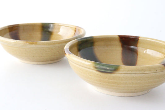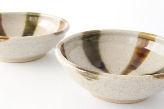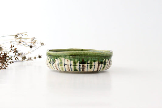Flat Bowl Oribe and Brown Stripes Tokusa | Serving Bowl Seto Ware