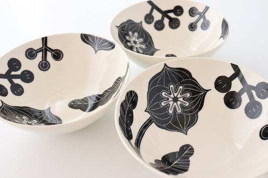 Fururu Rounbd Bowl Black Flower | Serving Bowl Hasami Ware