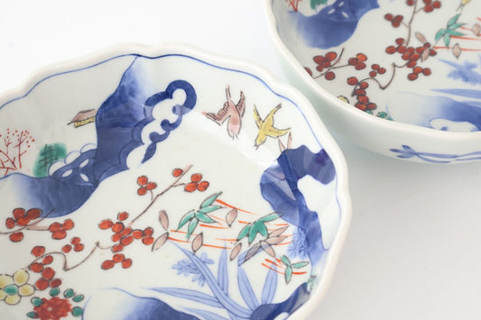 Flower-shaped Bowl Landscape Shochikubai Pattern|Serving Bowl Arita Ware