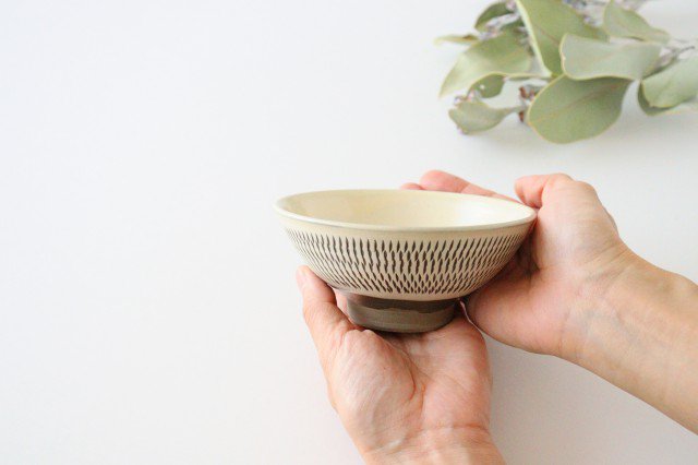 A 4-inch rice bowl that's just the right size to eat. Not only does it go well with freshly cooked white rice, but it also goes well with green pea rice, which has a soft white texture. The fascinating tobikanna pattern matches a wide range of cuisines, including Japanese, Western, Chinese, and ethnic. It has a moderate weight and sense of stability, is durable, and is easy to use, so it will become an indispensable part of your daily dining table. It can also be stacked for storage, so it's convenient to have one for your family and for guests.