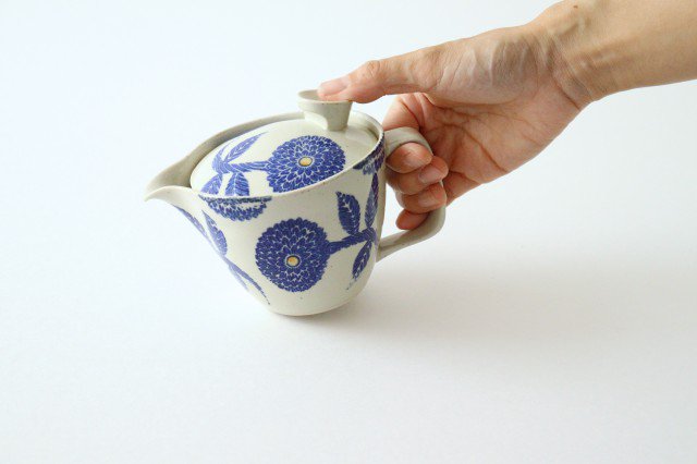 Japanese Teapot with Blue Dahlia | Kyusu Hasami Ware