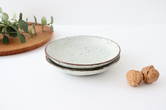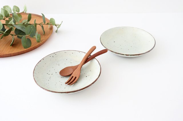 A plate made of iron powder that gives you the warmth of the earth. The spots created by iron powder are charming. It has a smooth and smooth skin and a comfortable texture that fits comfortably in your hands. It has a moderate weight and a sense of stability, so it can be used as a standard pottery.