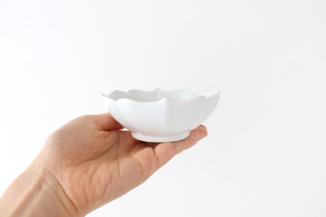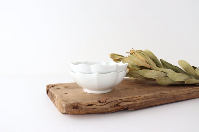 A small bowl with a flower motif called "Kikyoubuchi(bellflower-shape)" that has an elegant appearance. The smooth and smooth skin feels comfortable to the touch. It's a natural, warm and gentle color. It has a matte texture, so it's easy to match with other pottery. The slightly modern design of the traditional form will blend in with your daily dining table, regardless of whether it's Japanese or Western.