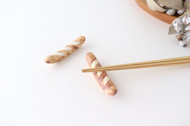 A chopstick rest in the shape of French bread that will make you want to eat it. The charred texture is exquisite, and it seems like it has a nice aroma. Both ends are slightly raised, making it difficult for the chopsticks to roll. A cute item perfect for relaxing at home.