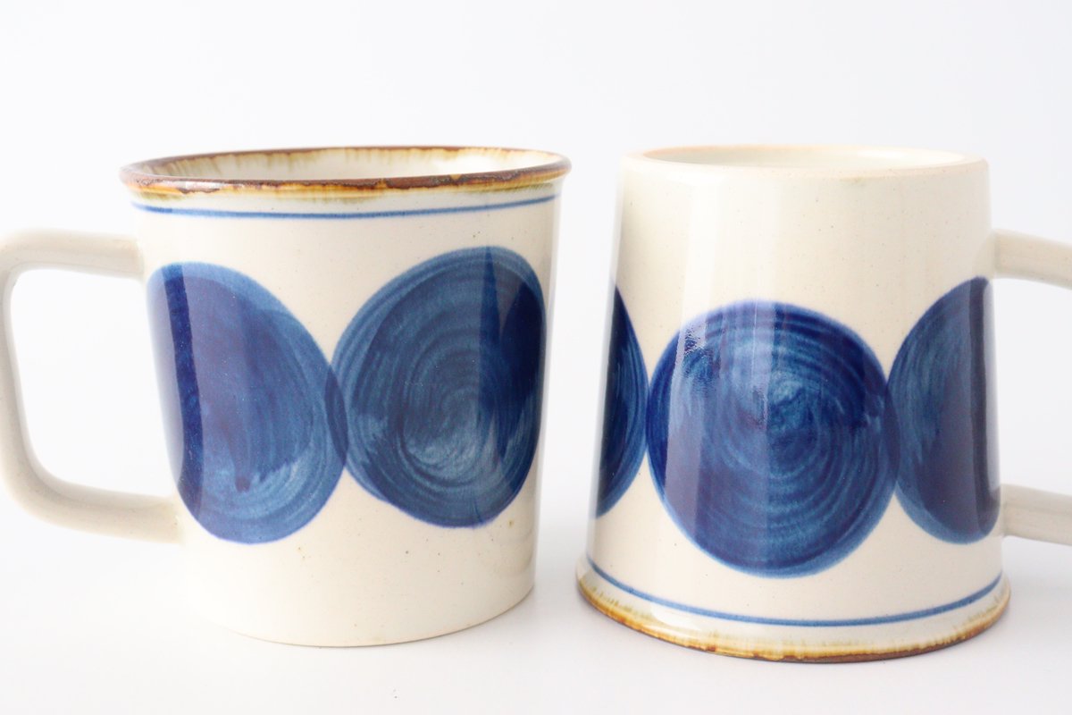 Mug round row pottery blue indigo Hasami ware