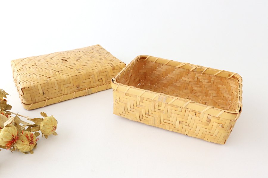 Have a picnic in the park with sandwiches packed with vegetables, rice balls stuffed with fried chicken and tamagoyaki! It's a convenient size for a lunch box for two people. Due to its cute shape, it is perfect not only as a lunch basket but also as a storage space for small items. It comes with a lid, so it's convenient when you want to secretly hide snacks. Can be used to store small stationery items, or as a tool box or sewing box. It looks like it would be fun to store as a picturesque interior. With daily use, the bamboo will take on a lustrous color and become a beautiful tool for daily life.