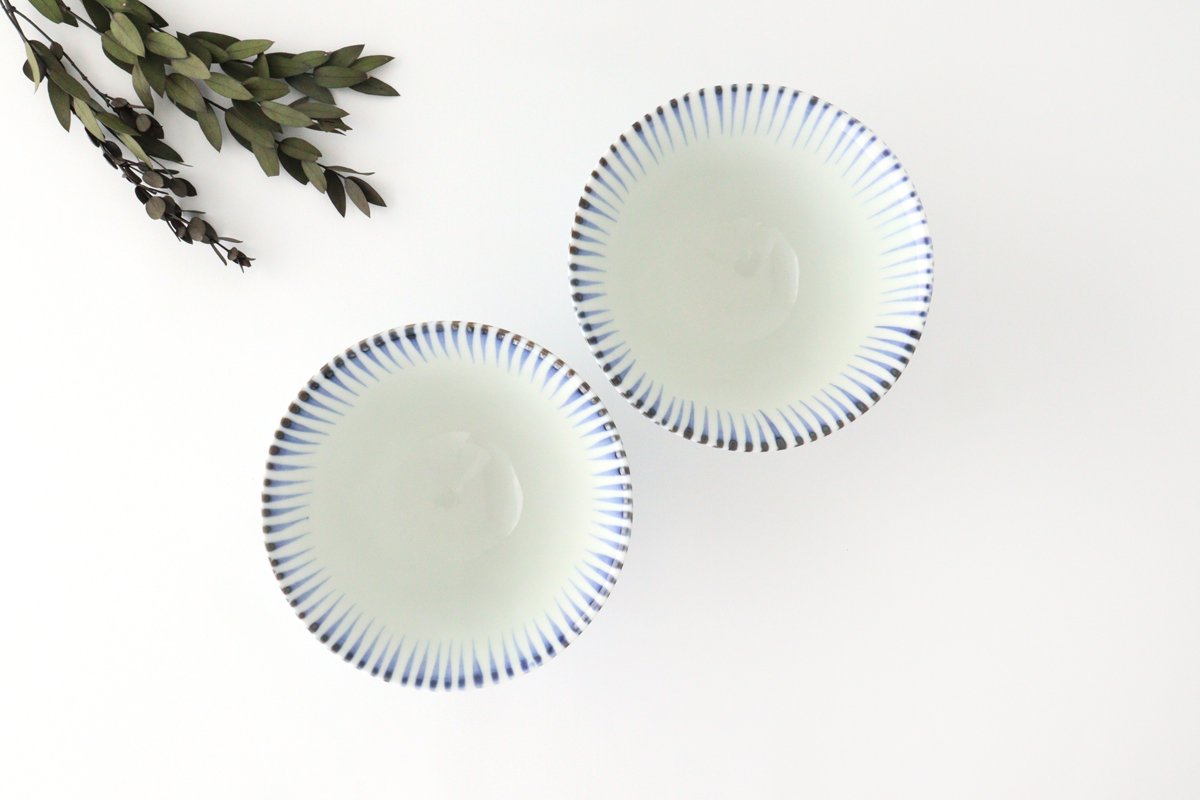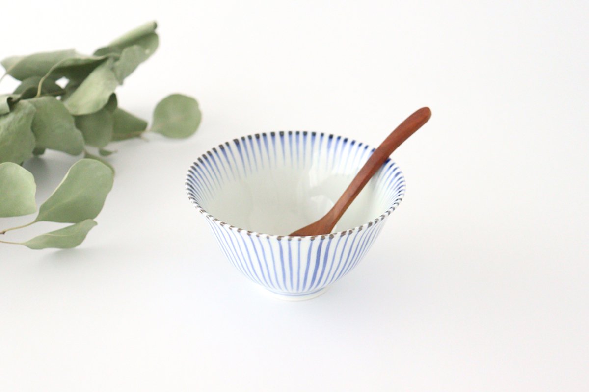 This is a rice bowl with a ten grass pattern(Tokusa) that has been popular in Japan since ancient times. A thin vertical striped pattern drawn with each stroke using Gosu. If you look closely, you can see lines running all the way around the high ground, and you can see the attention to detail. The body draws gentle waves and the curved edges are exquisite, making it a form that fits easily in your hand. The skills of Arita's craftsmen, who have continued to create pottery with consideration for the people who use it, shine through.