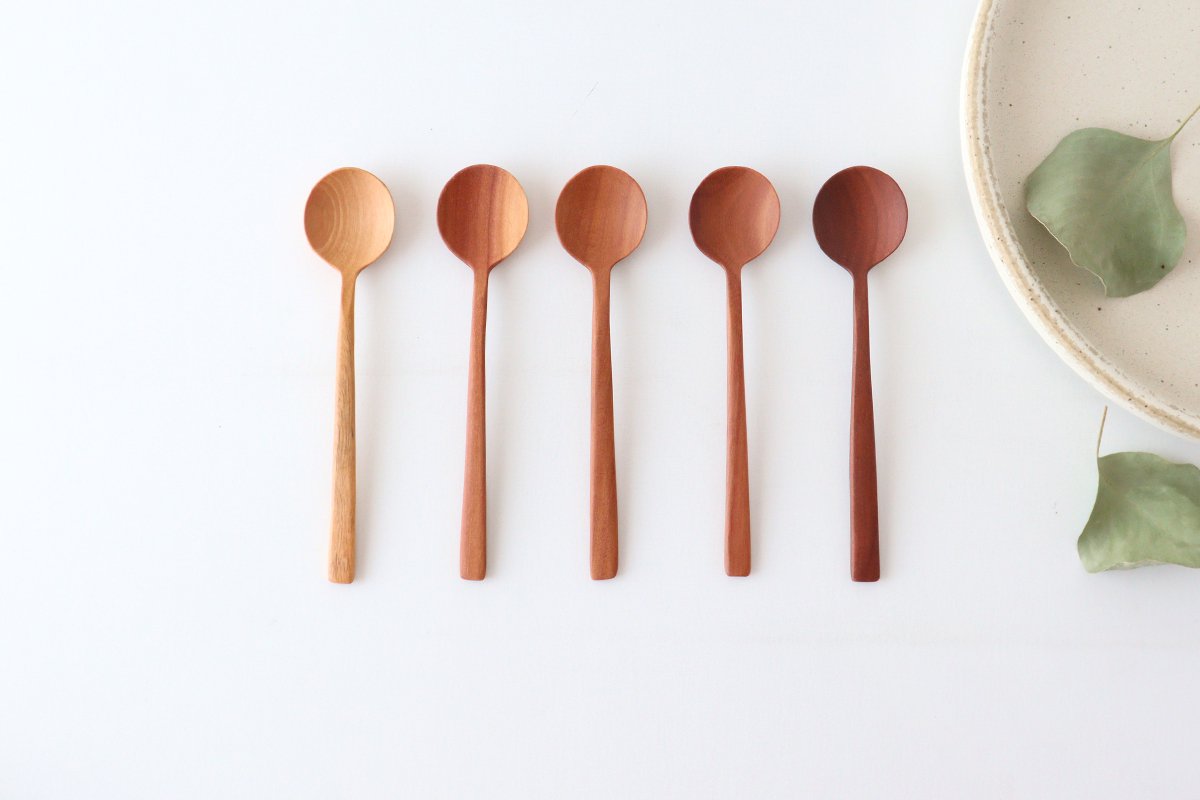 Small size that can be used for snack time such as pudding and yogurt. The cutlery, which has a warm wooden feel, goes well with the artist's handmade utensils, and is easy to use because it does not make a clicking sound when it comes in contact with the ceramic or glass surface. It's so easy to use that you'll be addicted to it. It is finished with a matte finish, giving it a more natural look. It is a useful item that is lightweight and easy to hold, allowing you to carry out daily tasks without stress.