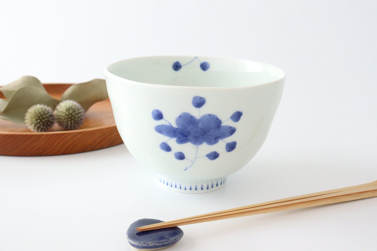 A noodle bowl with a beautiful peony pattern painted with bright gosu. The design is smooth and smooth to the touch, and has an elegant design without being unpleasant. The peony pattern drawn with a fine brush stands out well on the transparent, slightly bluish white porcelain. It's sure to add a touch of beauty to everyday life, as well as to small celebrations.