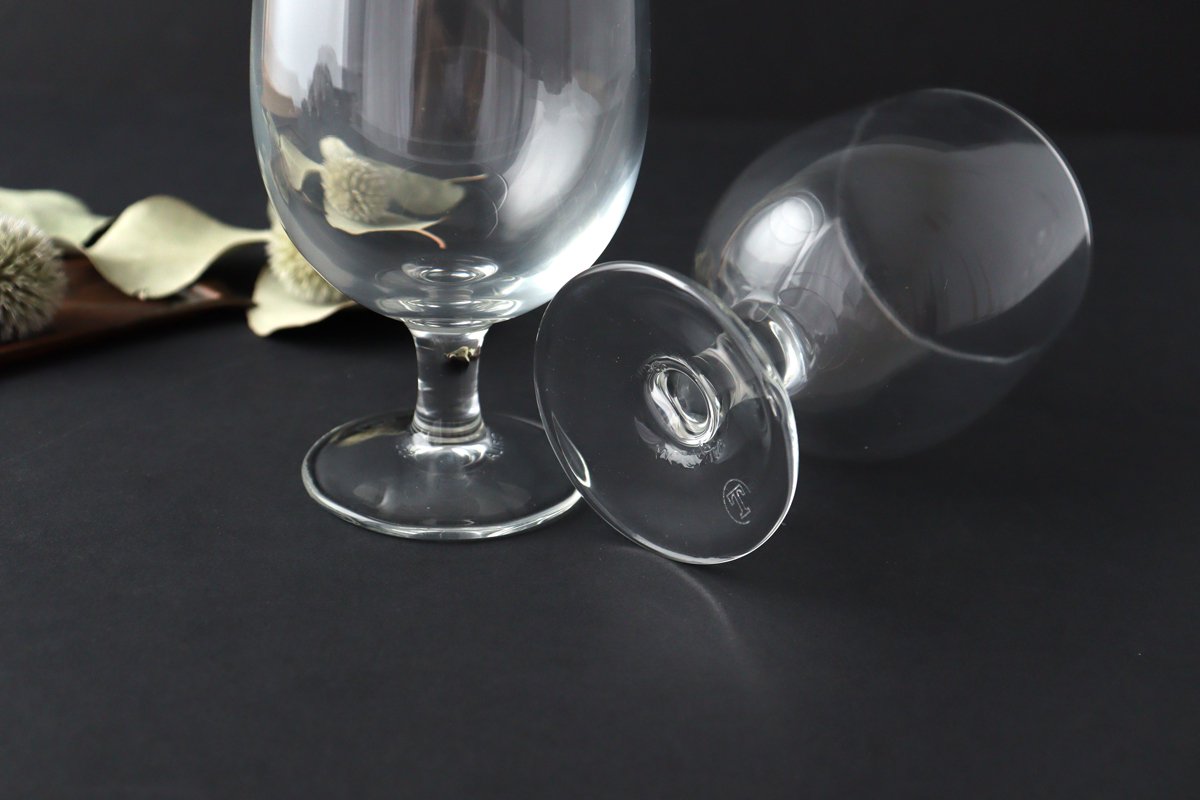 This wine glass is short and has a casual atmosphere. This silhouette naturally makes you feel excited just by adding legs. The width is solid, so it has an excellent sense of stability. It has a certain presence and will liven up the meal scene.