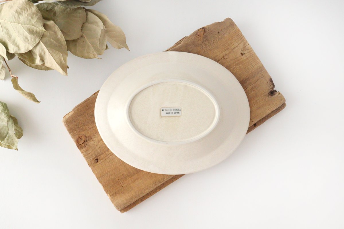 An oval plate with a lovely gentle texture. The carved pattern on the rim is an exquisite accent. It has a slightly rough and matte texture that is comfortable. It has a soft texture that will enhance your everyday dishes.