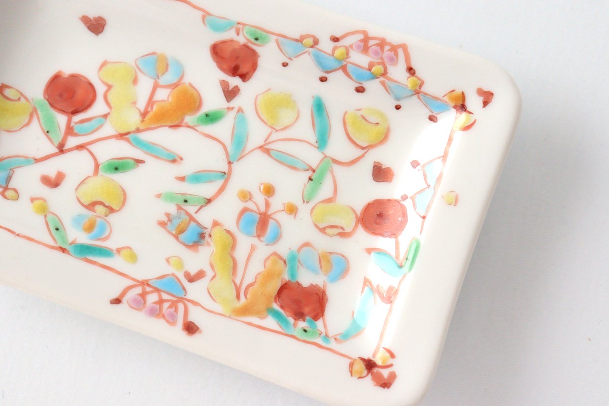 Ginshu Kiln Long Square Small Plate Flower Pattern | Kutani Ware-TOP