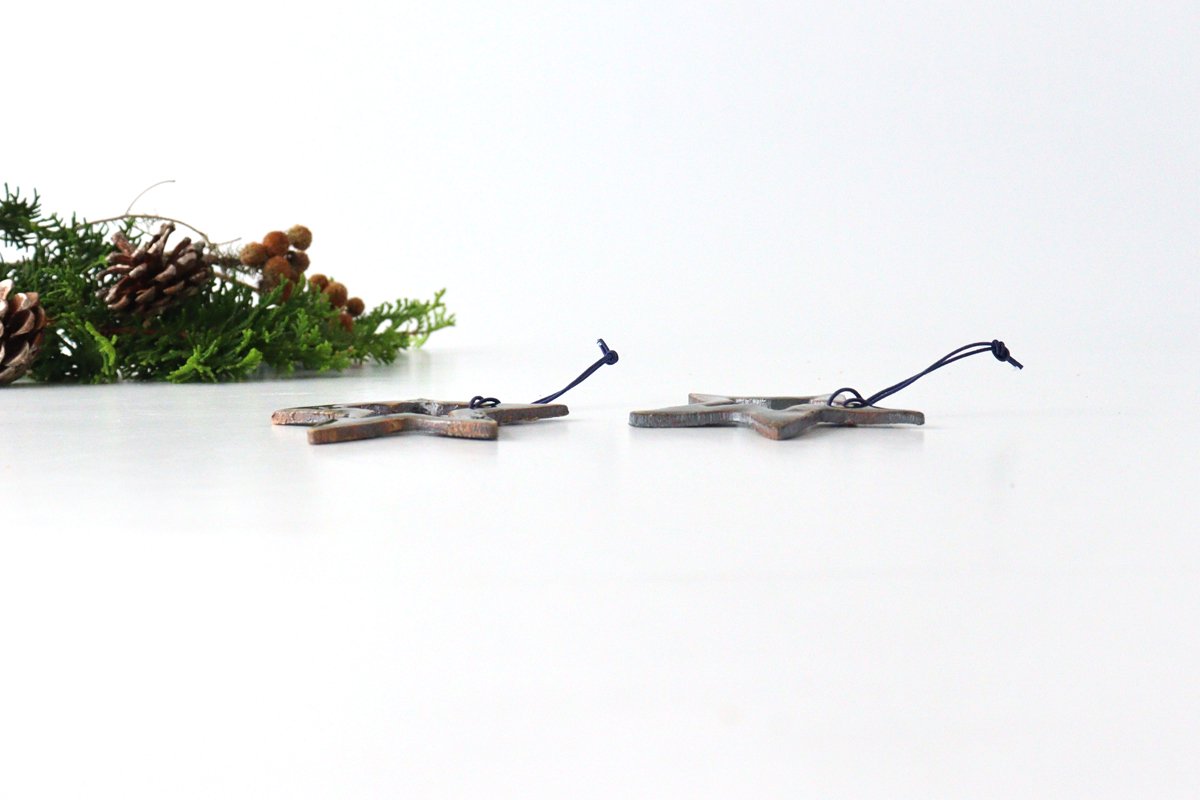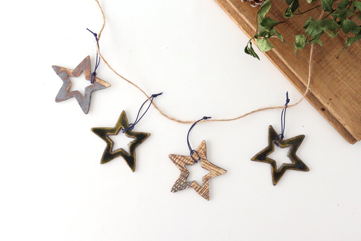 A star ornament made of ceramic. The moss-like deep green of Oribe glaze is a Christmas-like color.