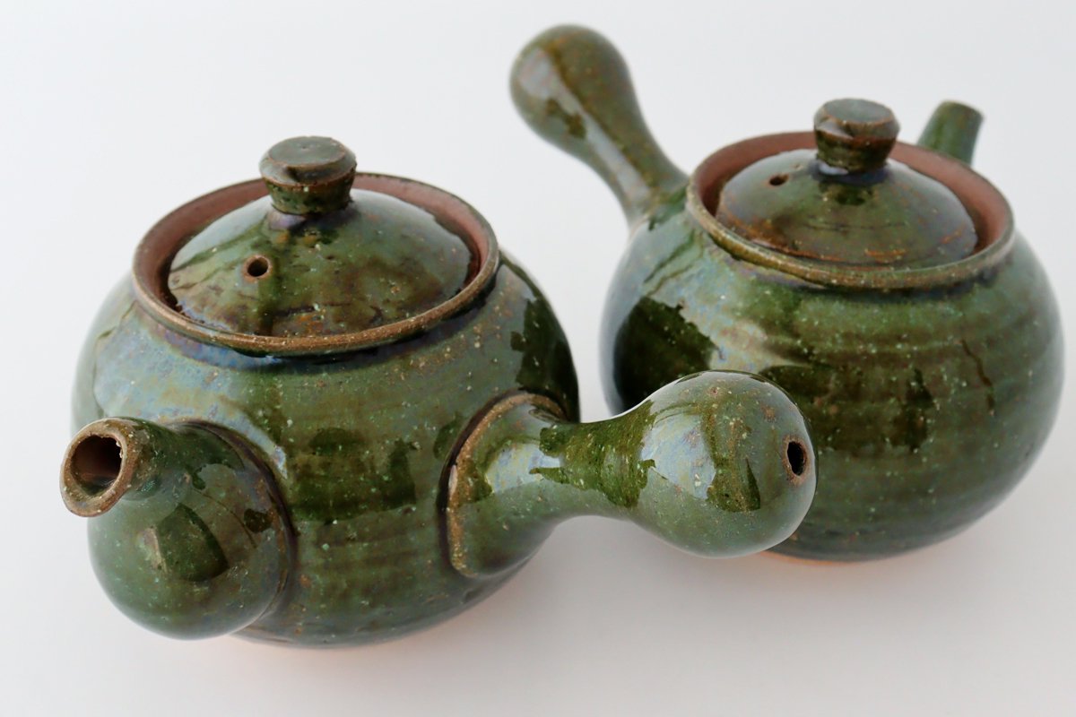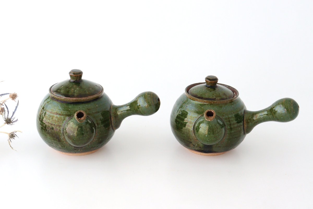 This teapot has a gentle, plump shape. It has a deep, lustrous color that appears to be a mix of brown and green. The easy-to-grip handle and distinctive spout reflect the maker’s attention to detail. The included tea strainer is deep and does not interfere with the opening of the tea leaves. Its rustic texture evokes a traditional Japanese feel and blends seamlessly with your dining table.