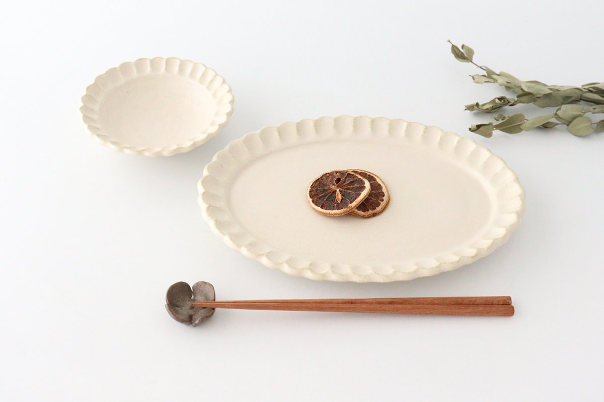 A bowl with an antique feel. The soft white color gives it a natural look. The thick edges make it difficult to chip, making it easy to use on a daily basis. The small, cute petals line up and add an elegant touch to your dining table.