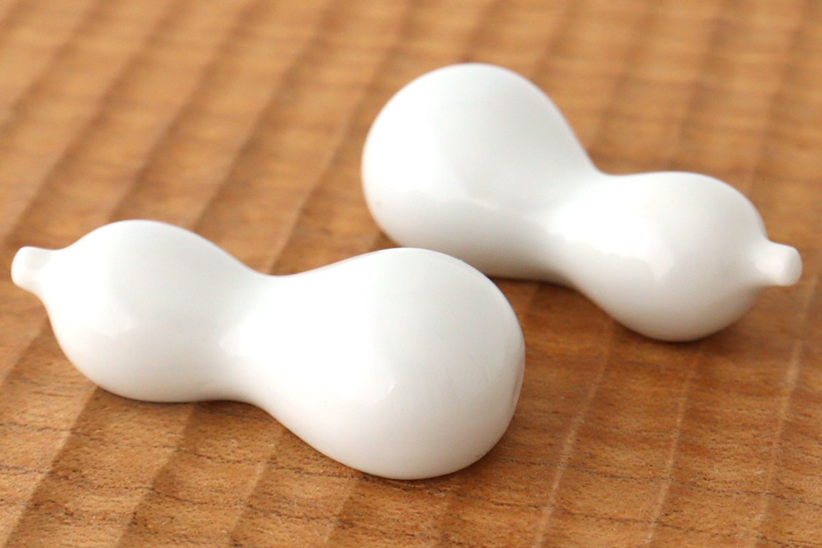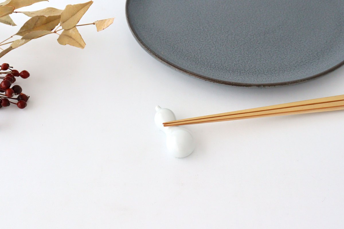 A plump hyotan (gourd) shaped chopstick rest. The rounded shape of glossy white porcelain gives it a lovely look. Another great feature is that the center is gently concave, so your chopsticks can fit neatly into it. With its auspicious motif, it can be used for everyday use as well as for celebrations.