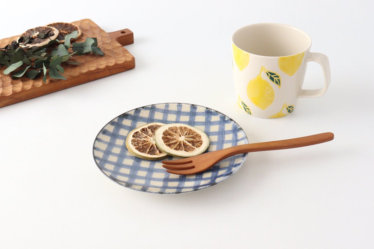 A small plate with a textile-inspired checkered pattern that adds a delightful accent to your table setting. The bold pattern reminiscent of Nordic tableware is captivating. Its smooth, silky texture is pleasant to touch, and the overall crazing creates a charming effect. Made of semi-porcelain, combining the warmth of pottery with the durability and elegance of porcelain. The checkered pattern adds a playful accent when paired with solid-colored tableware.