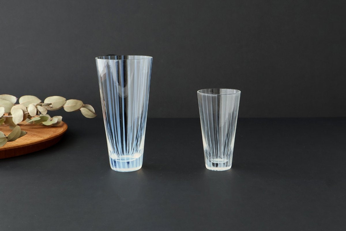 A tumbler with a beautiful milkyーwhite pattern. The patterns, created using the aburidashi technique popular during the Taisho era, are a result of the craftsmen's skillful techniques. Its deep opal-like color will leave you spellbound. The clean-cut Tokusa pattern will add style to your dining table.