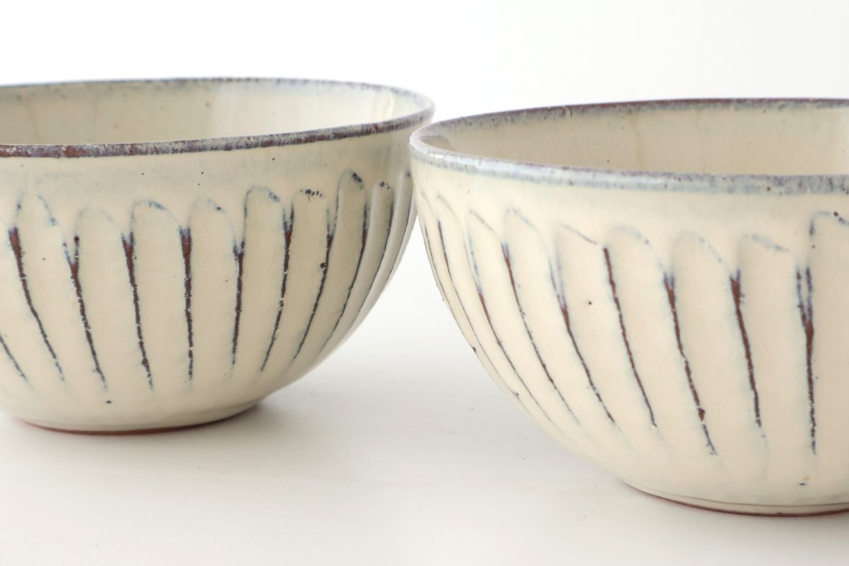 A bowl with a shinogi pattern. The surface has a glossy texture and is smooth and comfortable to the touch. Depending on how well the glaze is applied, a rough texture appears in some places, giving you a sense of warmth that is unique to pottery. With its easy-to-use form, it will be a great addition to your dining table.