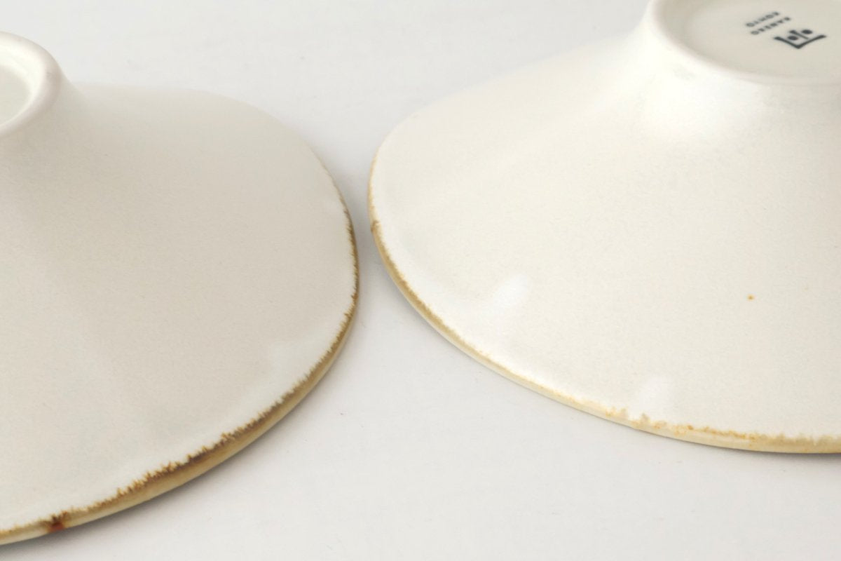 This bowl has a silhouette that looks like flowers blooming on the dining table. The cute form is impressive, just like a morning glory opening up. The smooth, gentle texture is comfortable to the touch. The rust glaze that spreads around the edges tightens the impression of the vessel. The gentle ivory color will make any dish stand out.