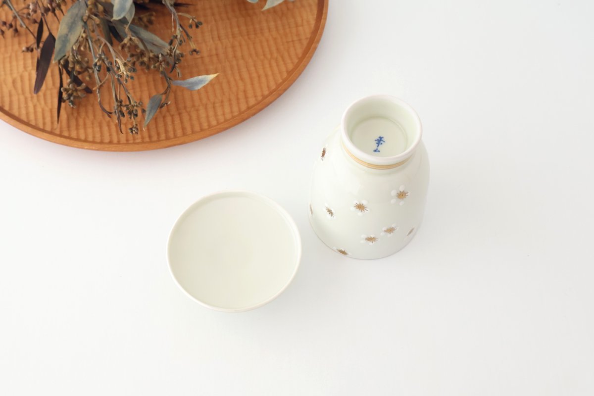 A lid with a strong presence, made for Japanese cuisine. The highlight is the gleaming gold on the smooth white porcelain. The lovely white plum pattern stands out. This product was made around the 1990s, and due to technical issues, it is no longer possible to make it, so it was kept as a dead stock item. It has an attractive and classy appearance that has not changed over the years.