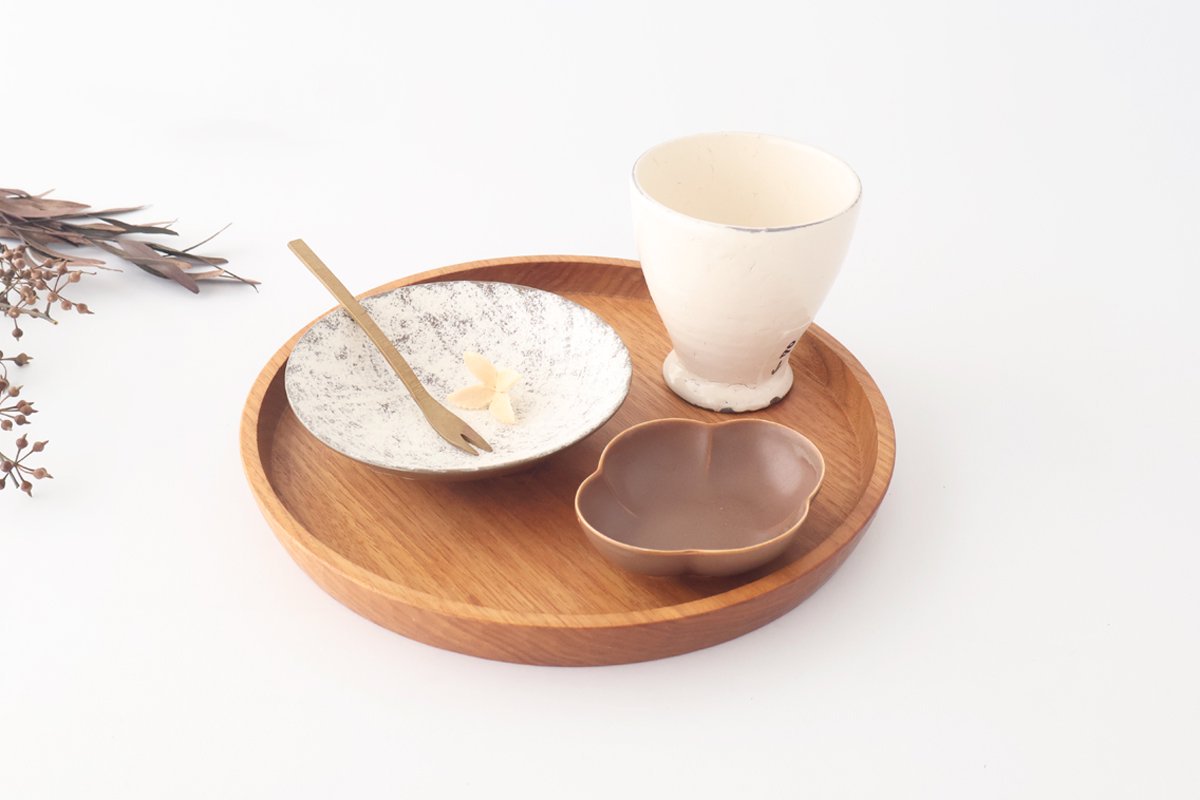 This small plate features the characteristic warmth of kohiki (powder-glazed) ware. The clay body subtly peeking through the mesh-like pattern creates a deep, appealing expression.