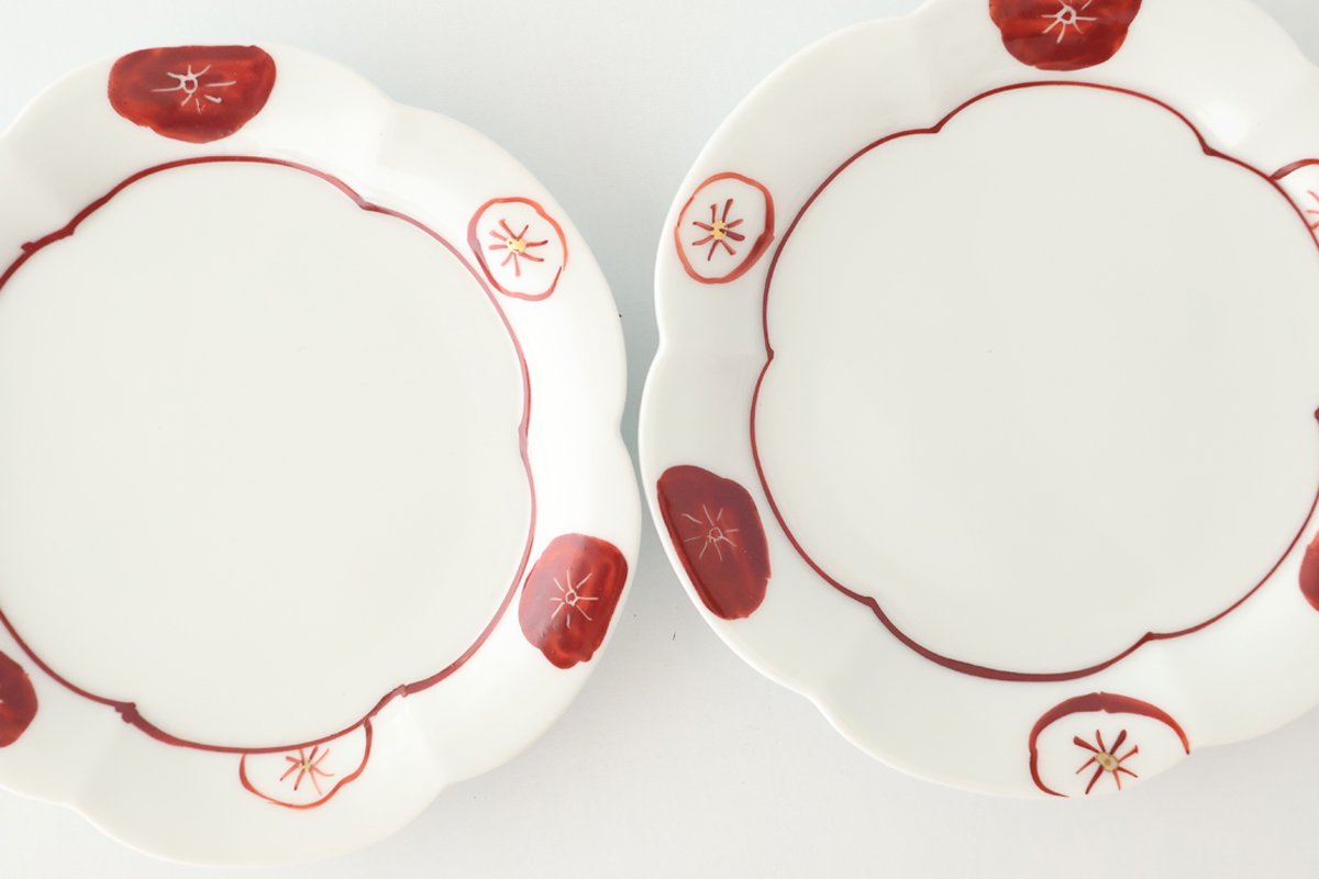 • Koyo Kiln Round flowe-shape Small Plate Red and White Plum | Arita Ware-TOP