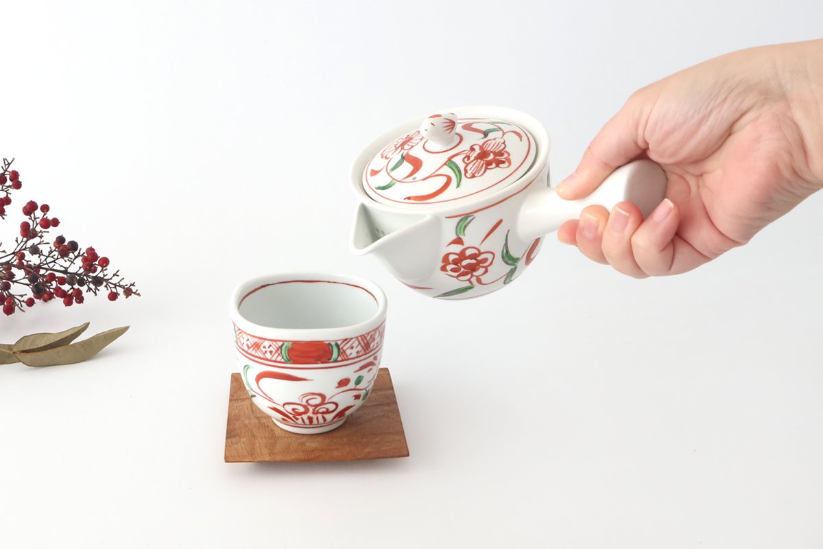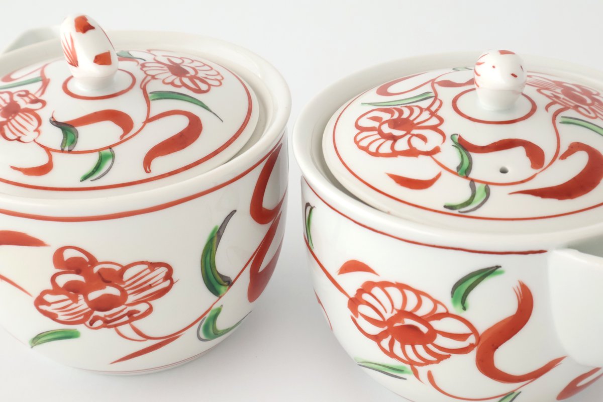 Japanese Teapot Red Flowers | Kyusu Arita Ware-TOP