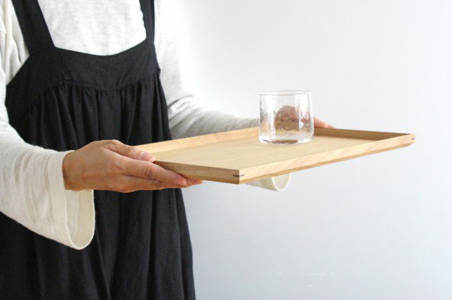 A long rectangular tray with an attractive natural texture.  The edges are reinforced with something called a "Kusabi(wedge)," which increases the strength and also serves as an accent to the design. It goes well with the artist's pottery. The trays are fit any material, such as ceramic, glass, natural wood cutlery, etc., and are easy to use on a daily basis.